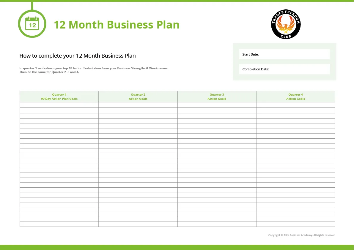 There are 12 key fundamental areas of your business that you have to identify and master. All 12 key areas have to be specifically built into your plans to ensure you are building a balanced and structured business.